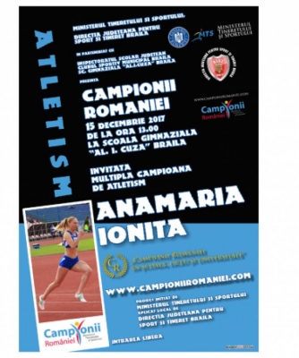 | Direcţia Judeţeană pentru Sport şi Tineret Brăila organizează, astăzi, de la ora 13.00, în sala de sport a şcolii “Alexandru Ioan Cuza”, o nouă întâlnire a valorilor sportive de pe plan local cu elevii, invitată fiind atleta Anamaria Ioniţă, o sportivă cu un palmares impresionant. Atletă încă în activitate, având în acest moment dublă legitimare, CSM Brăila - CSU Piteşti, Anamaria Ioniţă este multiplă campioană naţională, medaliată în competiţiile naţionale şi internaţionale. Anul 2016 i-a adus medalia de bronz la Campionatul Mondial de la Portland în proba de ştafetă 4X400 m plat şi tot anul trecut a participat cu lotul naţional al României la Jocurile Olimpice de vară din Brazilia.