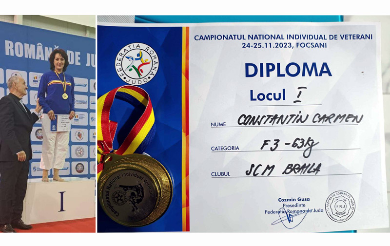 Pe 24 si 25 noiembrie, la Golesti, langa Focsani, s-a desfasurat Campionatul National de judo pentru veterani, o competitie la care antrenoarea sectiei de judo de la CSM Braila, Carmen Constantin, a urcat pe prima treapta a podiumului de premiere.